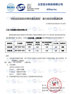 近日,廣紡檢測(cè)收到了北京中實(shí)國(guó)金國(guó)際實(shí)驗(yàn)室能力驗(yàn)證研究有限公司組織的NIL PT-4745 瀝青防水卷材拉伸測(cè)試、NIL PT-4746 瀝青防水卷材撕裂性能(釘桿法)測(cè)試能力驗(yàn)證結(jié)果滿意證書(shū),以及北京亞分科技有限公司組織的APICT-PT-202430 紡織品總鉛和總鎘含量的測(cè)定能力驗(yàn)證結(jié)果滿意通知單!