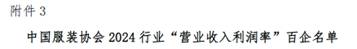 7月23日,中國(guó)服裝協(xié)會(huì)“2024行業(yè)百企發(fā)布”名單正式揭曉。紡織公司連續(xù)四年登榜,位列2024年中國(guó)服裝行業(yè)“營(yíng)業(yè)收入”百?gòu)?qiáng)企業(yè)第15名;首度榮登“利潤(rùn)總額”百?gòu)?qiáng)企業(yè)第28名、“營(yíng)業(yè)收入利潤(rùn)率”百?gòu)?qiáng)企業(yè)第99名!