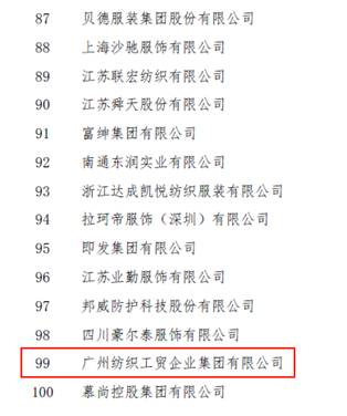 喜報(bào):紡織公司連續(xù)多年榮登“中國(guó)服裝行業(yè)百?gòu)?qiáng)企業(yè)”榜單